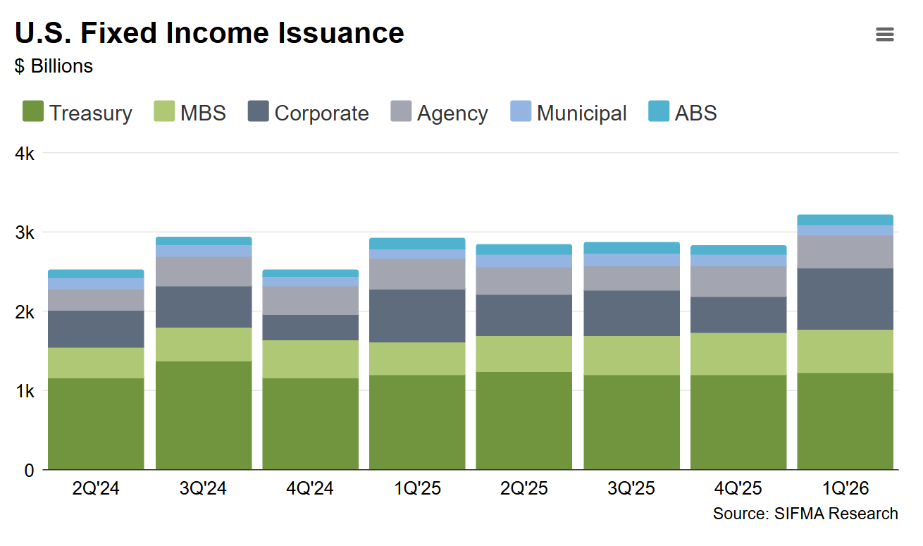 SIFMA noted that overall fixed income issuance in the US was US$3.2 trillion for the first quarter, up 13.7% quarter-on-quarter and 10.3% year-on-year.