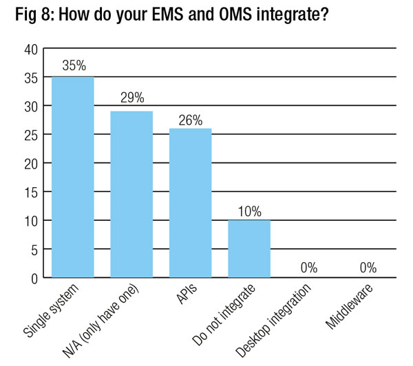 Working across execution and order management systems is a potential barrier to use of EMSs particularly, as any additional operational complexity mitigates the operational advantages that EMS functionality. To that point, we asked how firms were integrating their OMS and EMS systems and found 10% did not have integrated systems and nearly 30% only had one, not both, leaving no need for integration (see Fig 8). Those that did integrate were mainly a single system – 35% – or using APIs to integrate rather than other solutions such as desktop integration software.