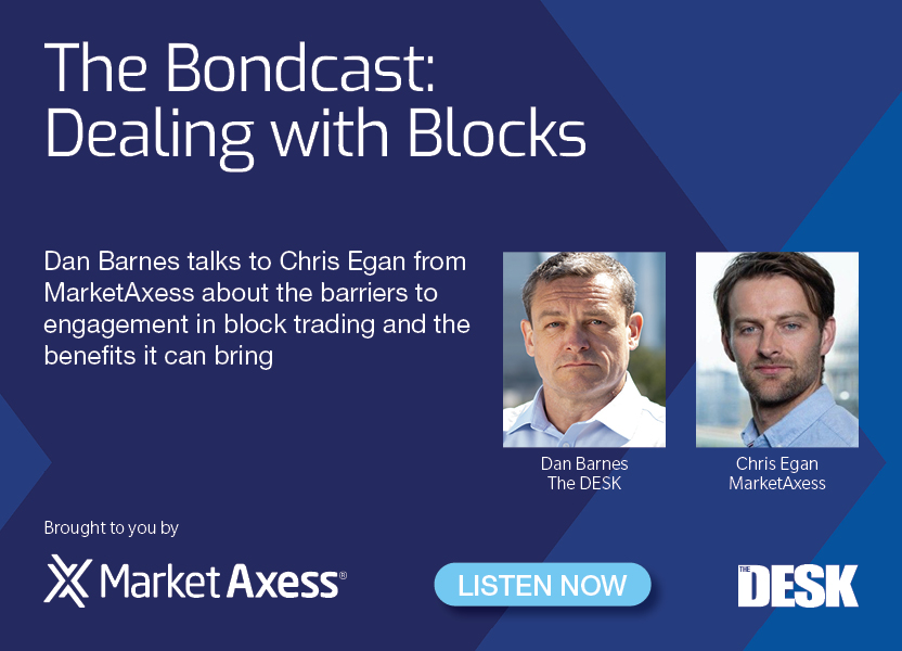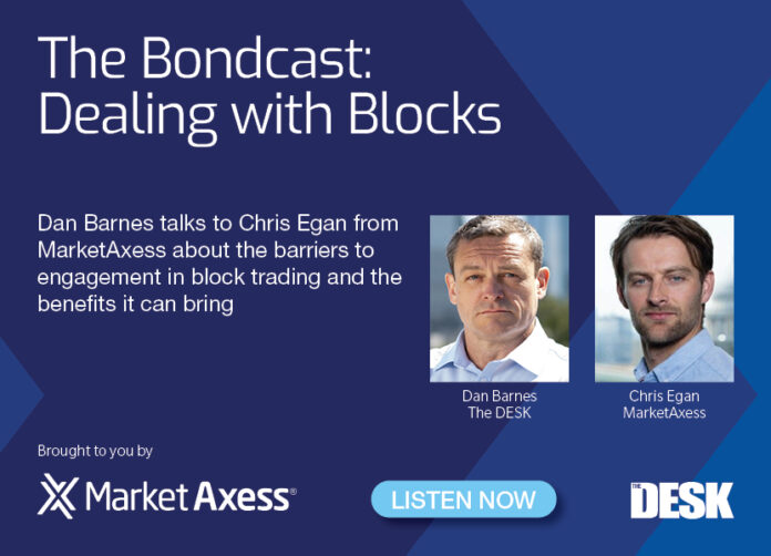 This is the Bondcast interview with Chris Egan of MarketAxess, to discuss the barriers to engagement in block trading today for dealers, and how the electronification of the process can enable greater participation from traditional market makers, what impact that will have upon the liquidity provision capabilities, and the benefit that buy-side traders can expect to see in tighter bid-ask spreads for larger sized blocks of bonds.